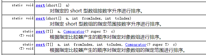 Arrays有多个重载的sort()方法,既可以按照自然顺序排序,也可以传入比较器参数定制顺序排序