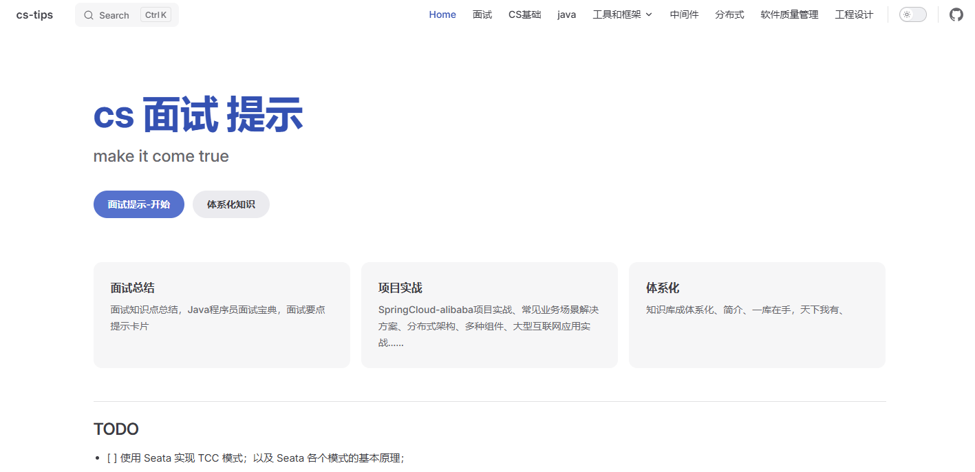 一个互联网面试内容汇总和八股文学习的网站,让互联网面试不再成为困难~