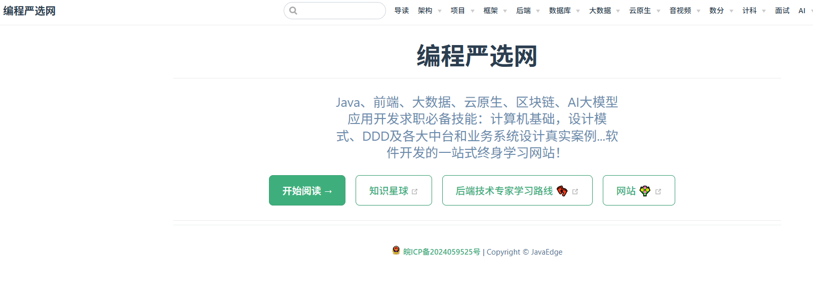 Java、前端、大数据、云原生、区块链、AI大模型应用开发求职必备技能:计算机基础,设计模式、DDD及各大中台和业务系统设计真实案例...软件开发的一站式终身学习网站!