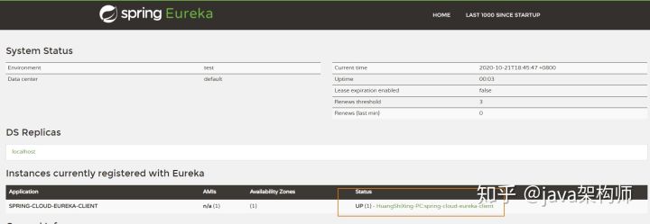 启动客户端,然后刷新刚刚打开的Eureka主页,我们发现服务已经注册成功。
