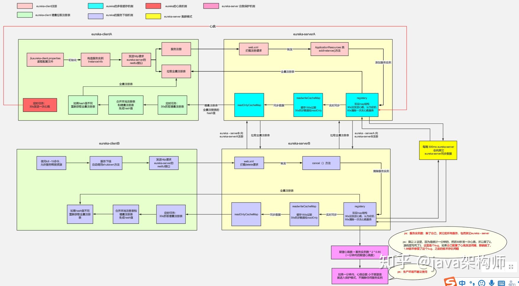 如果Eureka Server在多个心跳周期内(默认90秒)没有收到Eureka Client发送过来的心跳,Eureka Server将会在服务注册表中将该节点剔除。