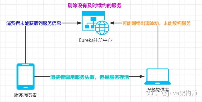 但是在某些时候,遇到网络分区故障,服务节点实际上是正常存货状态,但是却无法和Eureka Server正常通信,此时如果没有引入自我保护机制,Eureka Server就会将该服务节点剔除。