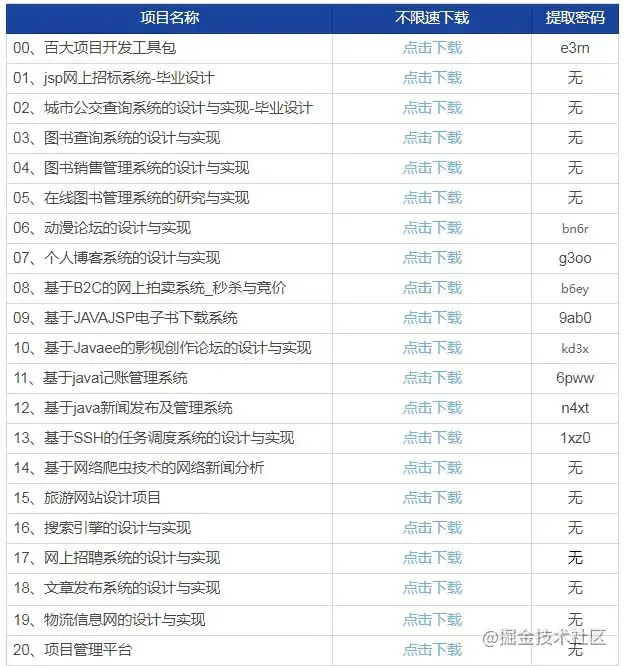 上述展示的java百大项目因内容较多,在此只展示部分,想看其他项目的可以说一声,我把资料都打包好了,点个小赞,项目到手,还在等什么?