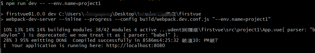 npm run dev -- --env.name=project1 (项目名称)