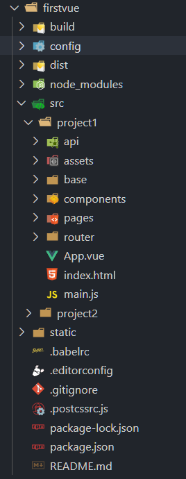 至此 project1 目录创建完成、如果想创建更多的项目,按照 project1 的结构和文件依次创建即可。此时的目录结构是这样的:
