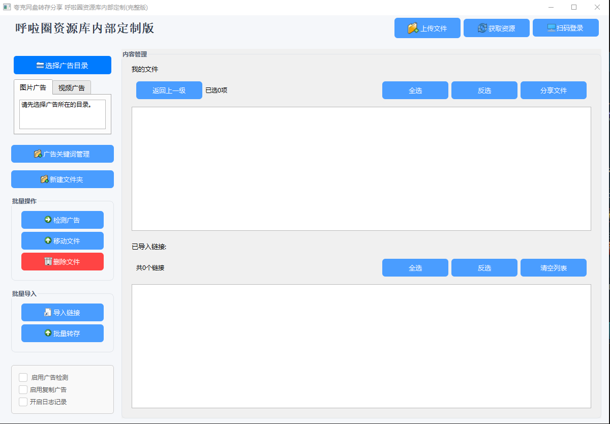批量转存时,可以勾选植入自己的广告文件,不仅删除别人的广告,还能加上自己的内容, -