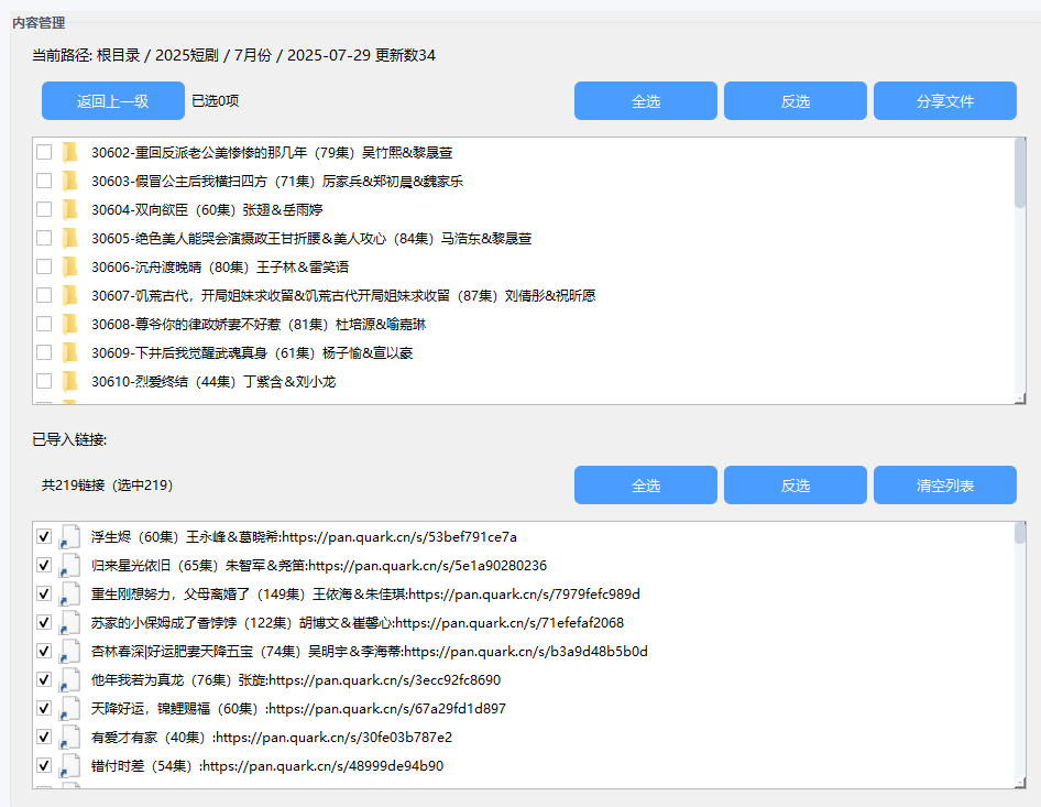一键全选短剧文件,批量生成分享链接,省时省力,特别适合资源整理和分享! -