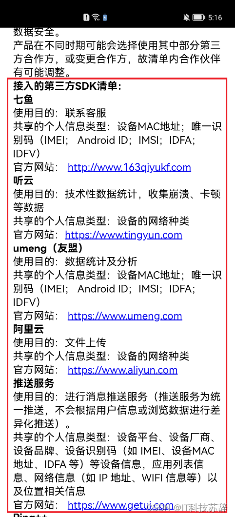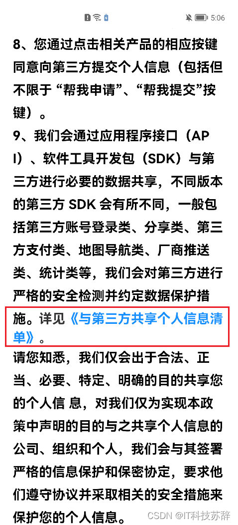 图1 正文中的第三方SDK隐私声明 图2 第三方SDK隐私声明链接 图3 表格形式呈现的第三方隐私政策