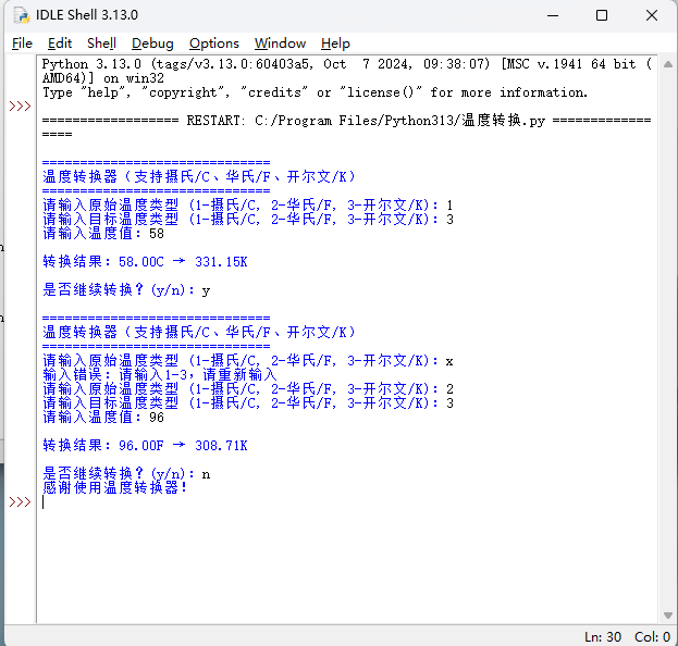 print(f"\n转换结果:{temp:.2f}{type_map[[k for k,v in type_map.items() if v[0]==from_type][0]][1]} → "