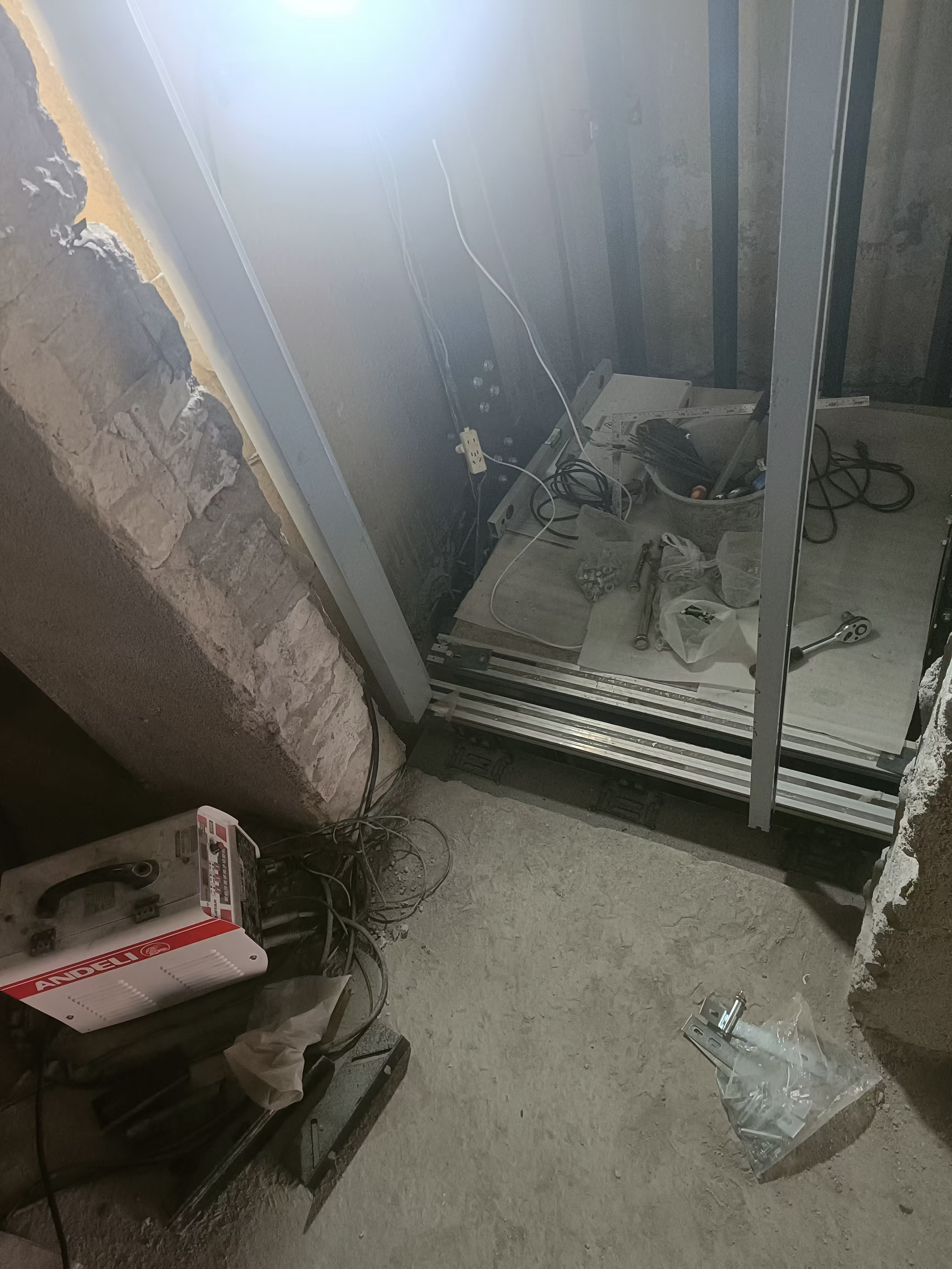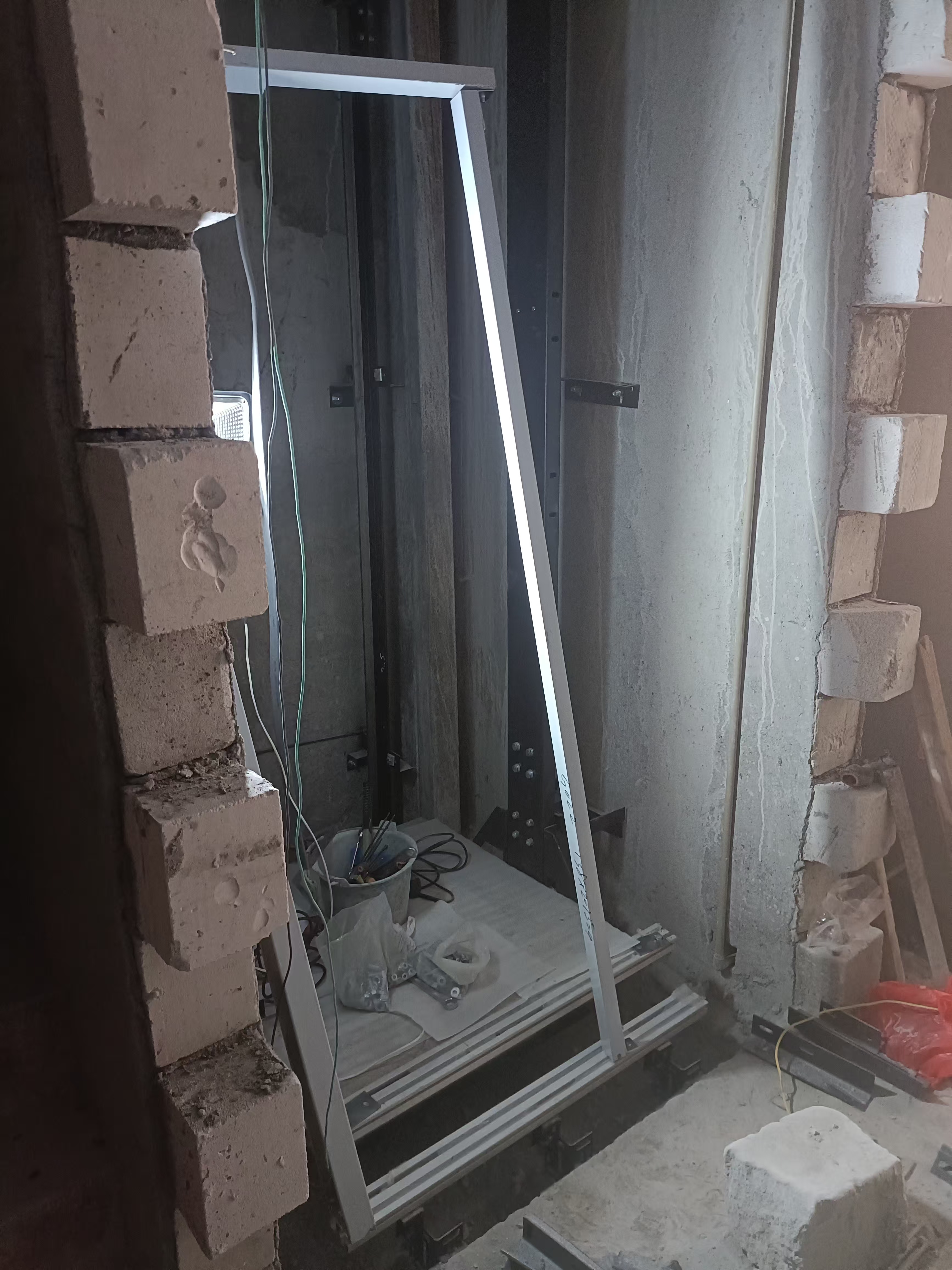 差不多一个月过去了,轿厢终于算是拼装好了,开始装层门了,这个过程很慢并不是因为轿厢有多复杂,而是上下调试平整度特别麻烦,如果最开始所有环节精度都特别的高,这个过程应该比较快,由于第一次装,忽略了很多细节,导致后面不断返工,最后所有的位置都要合格,电梯上下的过程才丝滑平衡。由此我想到很多我乘坐过的电梯,越想越后怕。其实很多电梯乘坐时听到的声音,感到的振动,其实就代表某个部位安装的精度是不够的,甚至位置相差很大的。只能说是凑合能用,必须定期维护,否则就容易发生危险。特别是老旧电梯,早期的井道精度不够,安装过程苟且,实在是不敢乘坐,现在很多的电梯特别是旧楼加装的电梯,全部采用外部钢结构所有的部件都是数控切割的,安装也是孔对孔就行了,这确实既能保证强度又能保证精度,用起来还是比较放心的。