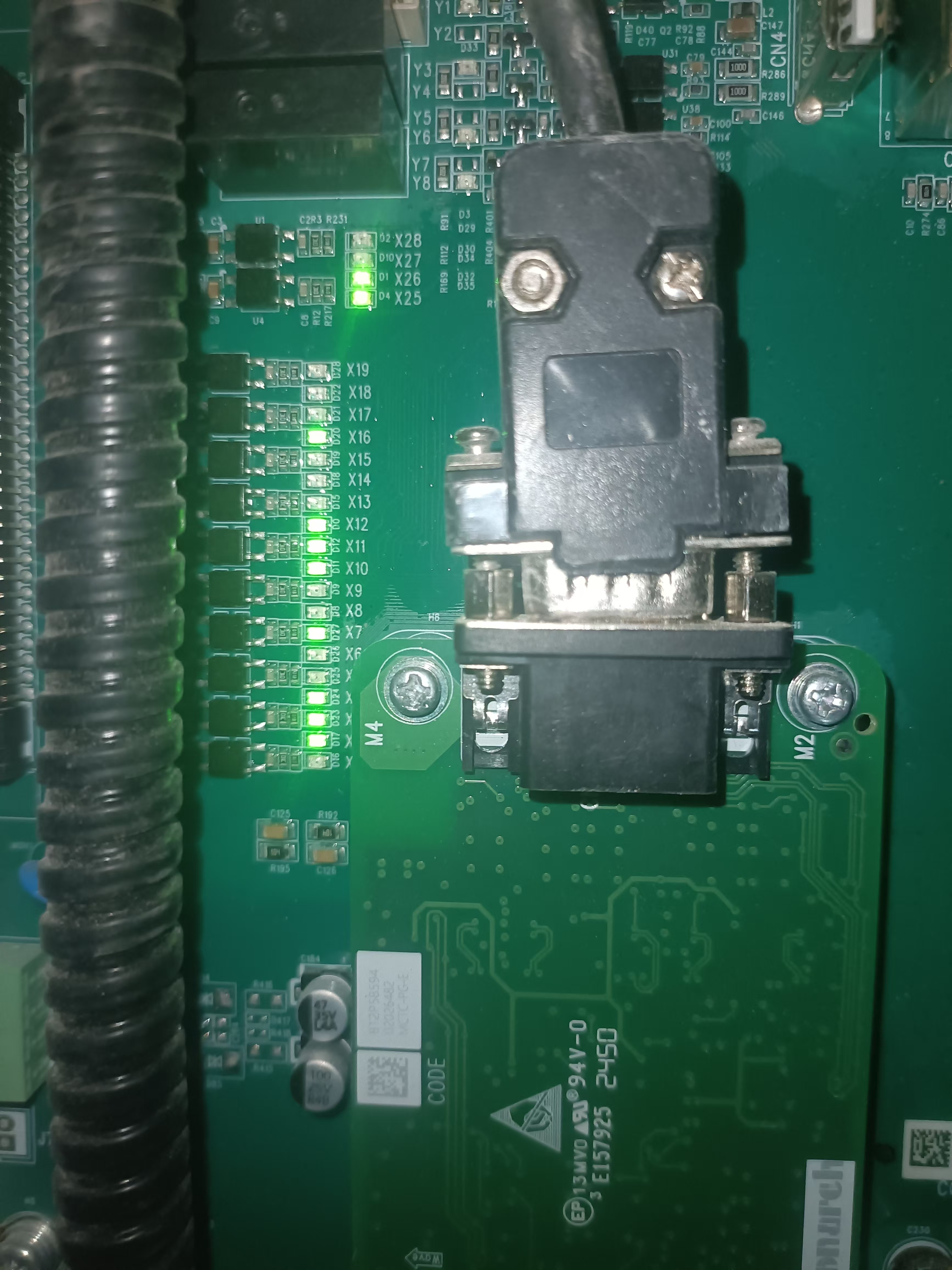 信号连接后在主机内的指示灯,特别注意X26,27,28 这个灯亮起代表安全回路接通,是电机具备动的基本条件。