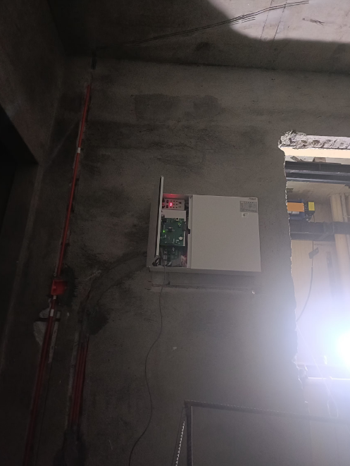 电梯是三相电的,我早已提前引进来5根线整装待命,电柜一下子就装好了。通电灯亮。今天结束。