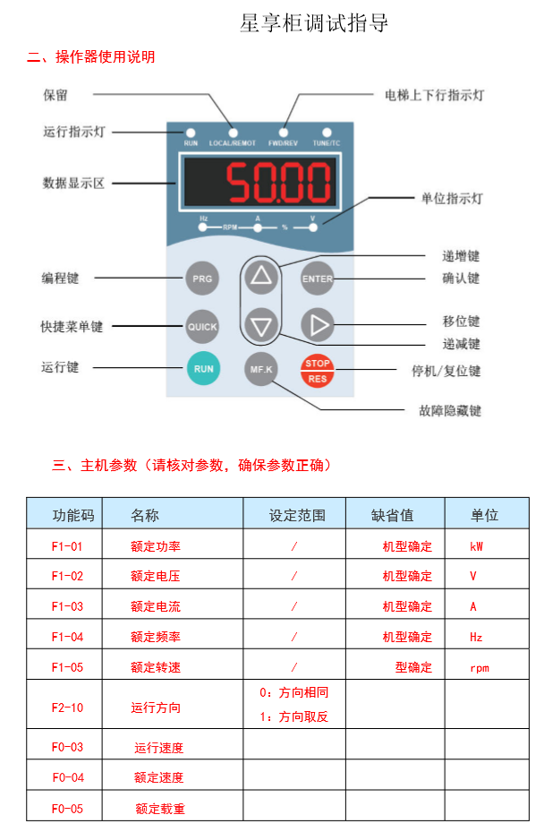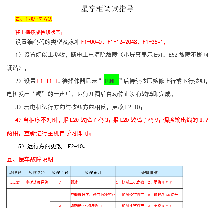 3.检修试运行,在检修模式下,手动上下,看运行的速度,方向,各个回路的指示灯是否正常,包括上极限和下极限,各个平层时的磁传感器动作,1层时的磁传感器的信号翻转。这个特别重要。