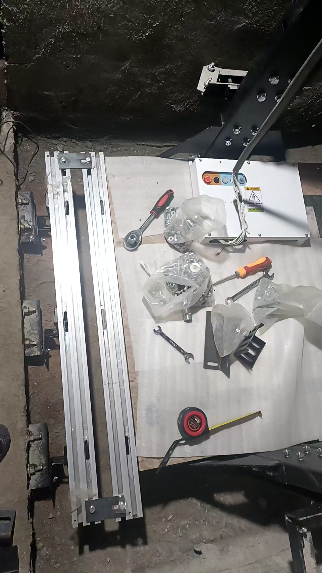 1天后,钢架搭好了,顺便让打孔的师傅把孔也开好了。然后把粱也上去了。还好,每个零件都不算重,真正重的是电机。