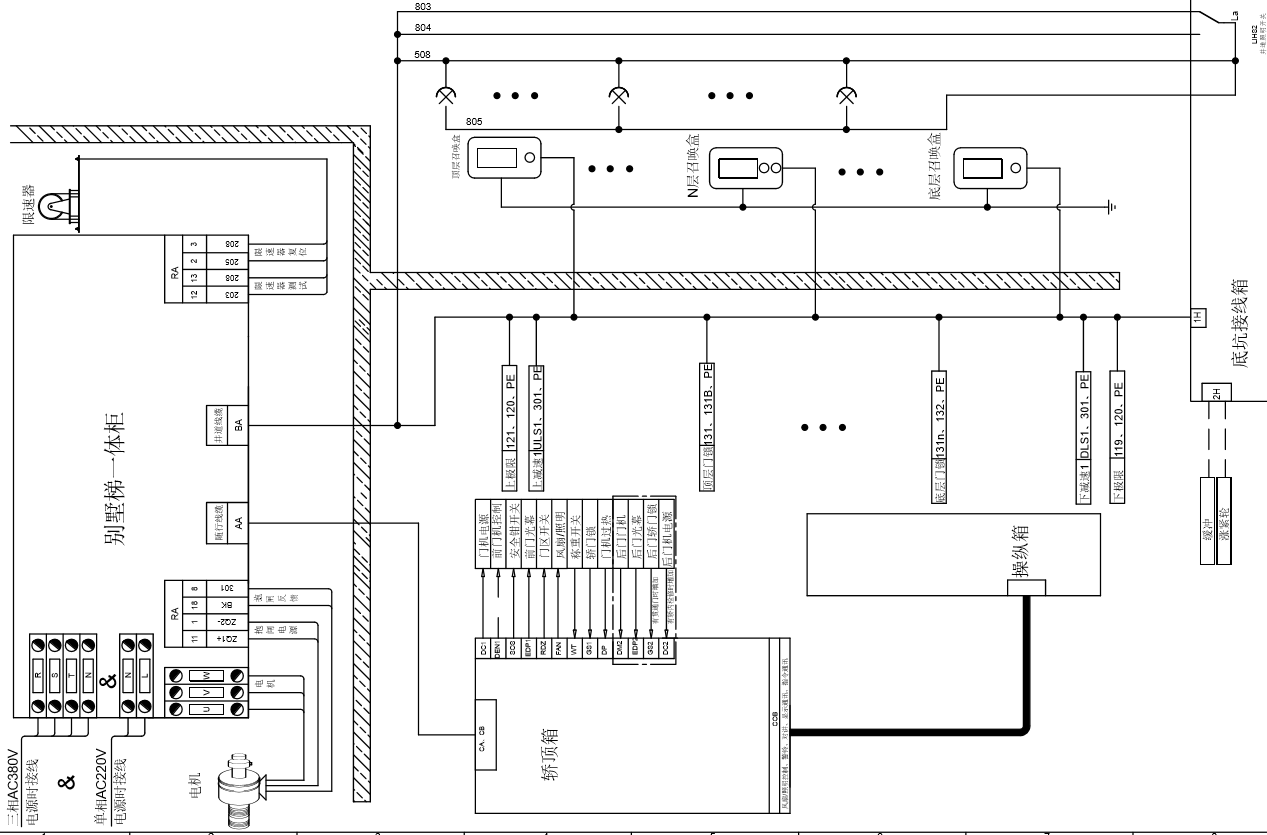这部分东西特别多,有安全钳结构,平层传感器,极限传感器,轿厢照明,风机,一大堆的电缆