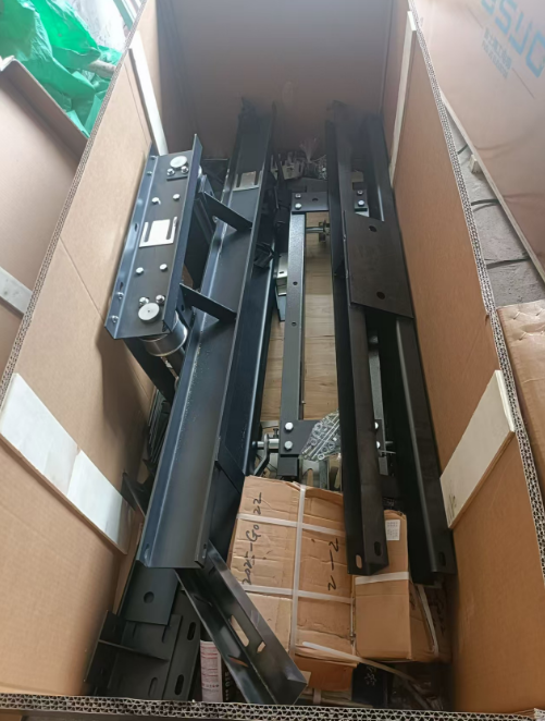 导轨装完了,在副导轨封顶前要先把对重架装进去,因为运他过来时是装好的,所以也就不用拆,直接嵌进去,这时就体现出精度的意义了。