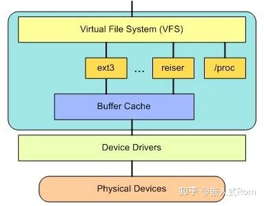 在 VFS 上面,是对诸如 open、close、read 和 write 之类的函数的一个通用 API 抽象。在 VFS 下面是文件系统抽象,它定义了上层函数的实现方式。它们是给定文件系统(超过 50 个)的插件。文件系统的源代码可以在 ./linux/fs 中找到。文件系统层之下是缓冲区缓存,它为文件系统层提供了一个通用函数集(与具体文件系统无关)。这个缓存层通过将数据保留一段时间(或者随即预先读取数据以便在需要是就可用)优化了对物理设备的访问。缓冲区缓存之下是设备驱动程序,它实现了特定物理设备的接口。