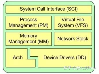 Linux内核的主要组件有:系统调用接口、进程管理、内存管理、虚拟文件系统、网络堆栈、设备驱动程序、硬件架构的相关代码。