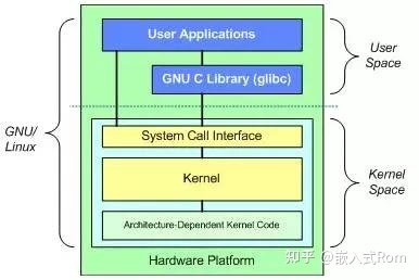 (2)内核空间:内核空间包括,系统调用,内核,以及与平台架构相关的代码