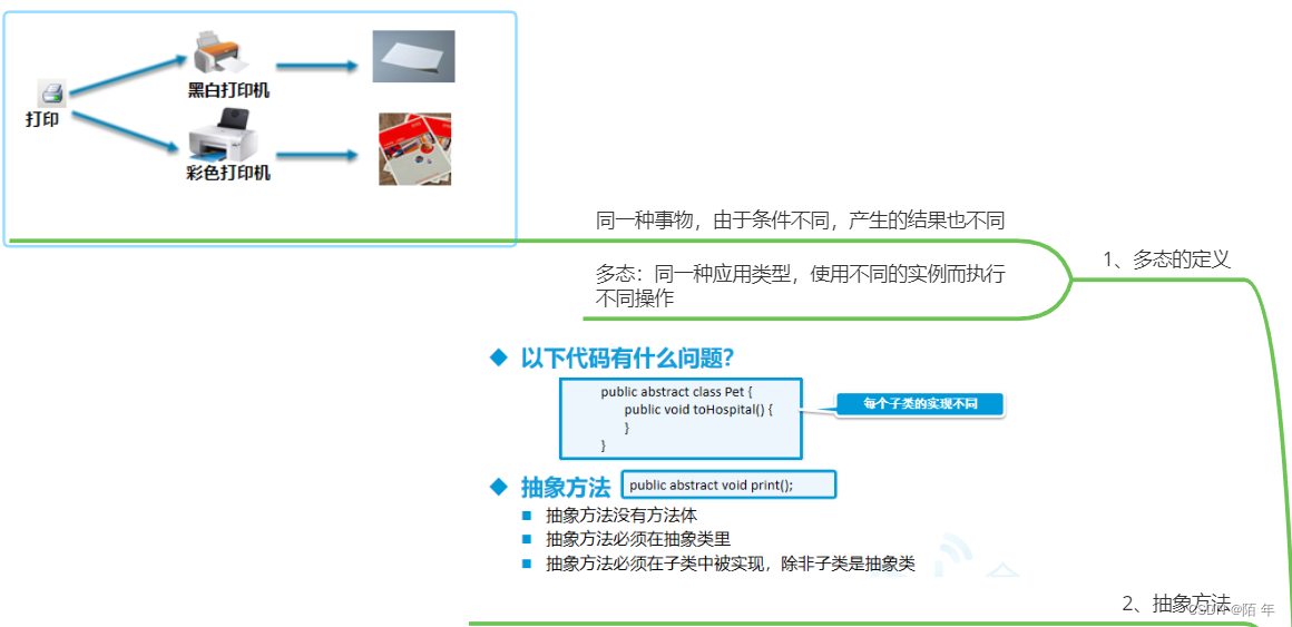 1)抽象类的声明跟之前声明一个类没有太大的区别,依然可以封装属性、声明构造方法、声明getXxx()/setXxx()方法、重写toString()方法等