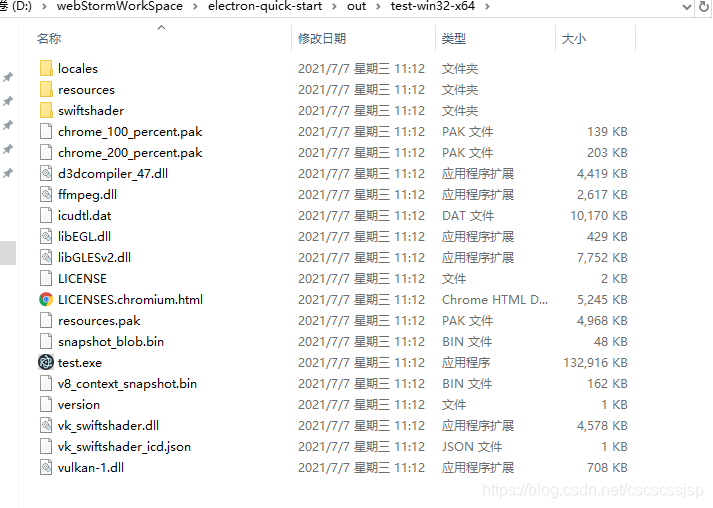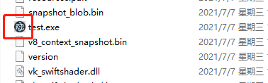 打包后的目录 其中test.exe就是启动文件 直接点开看到效果 和npm run start 是一样的
