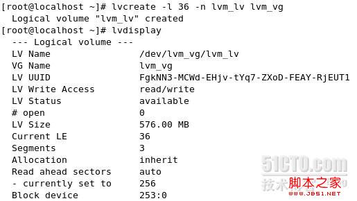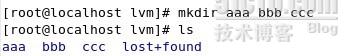 3.接下来我们利用PE块的数量来创建lv由于每个pv能划分出的PE是12个因此要创建一个600M的需要36个PE。命令如下lvcreate -l 36 -n lvm_lv lvm_vg将建立的lv格式化并挂载到/mnt/lvm下。并且在其中建立了三个文件夹aaa bbb ccc。