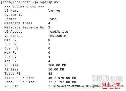 建立命令如下vgcreate -s 16M lvm_vg /dev/sdb{5,6,7,8}。