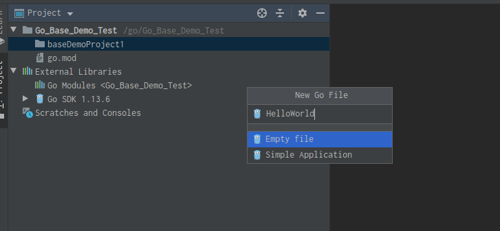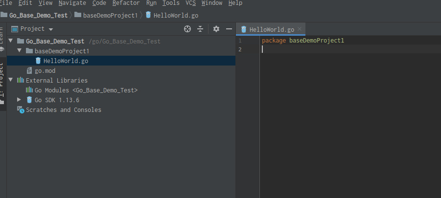3、新建一个目录,baseDemoProject1,这里我们是为了区分后续的其他测试项目,因此这个独立创建一个目录,其实我们现在实现也可以直接创建一个go程序。