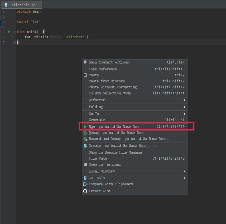 然后在该目录下创建一个go文件,命名为HelloWWorld,命名可以随意