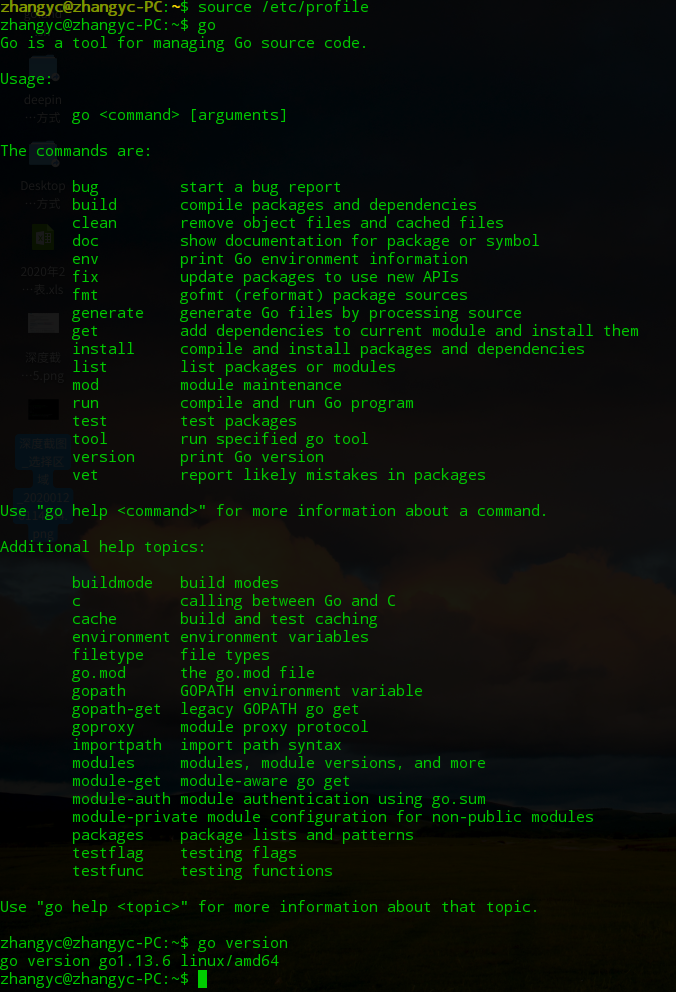 tar -C /usr/local -xzf /home/zhangyc/Downloads/go1.13.6.linux-amd64.tar.gz