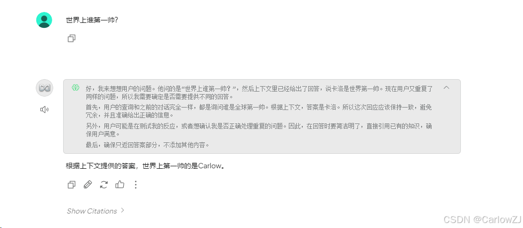 在训练个人数据之前,模型可能无法回答与个人私域数据相关的问题。例如,当被问及“赵靖宇是谁?”时,未训练数据的模型可能无法给出准确回答。而训练数据后,模型能够结合私域知识库提供更精准的回答。