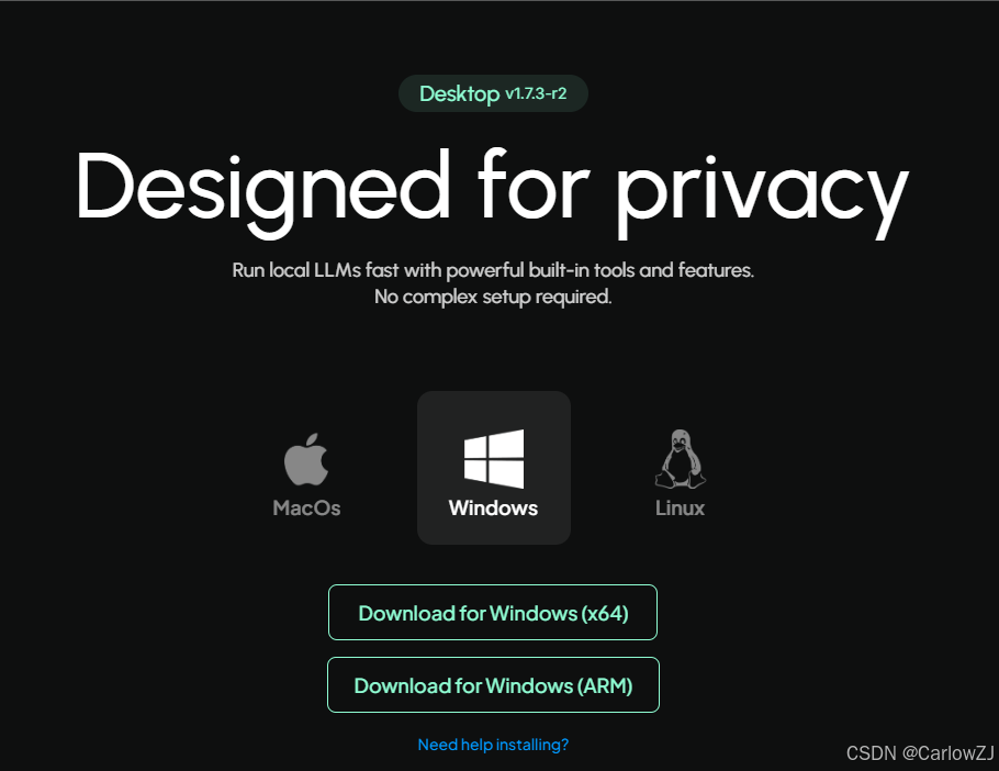 下载地址:访问 AnythingLLM 官方网站,选择适合你系统平台的软件版本。