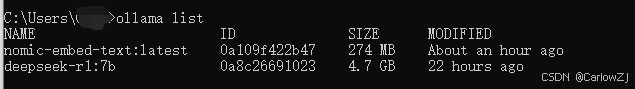 下载嵌入模型:在终端或命令行中输入以下命令下载