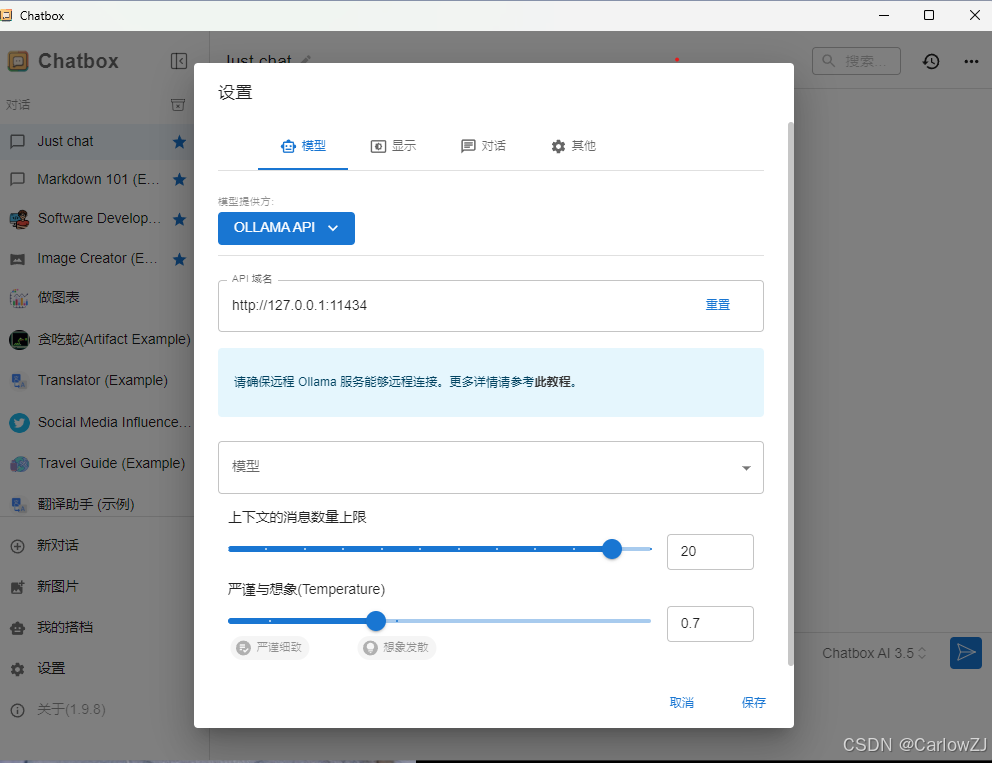 配置完成后,返回 Chatbox 主界面,输入问题并测试模型的响应。