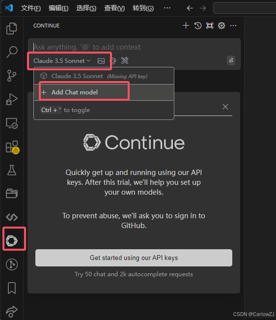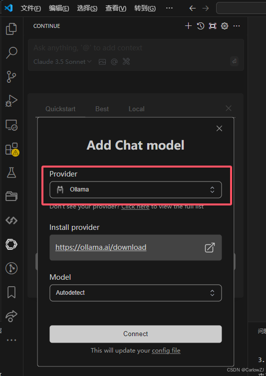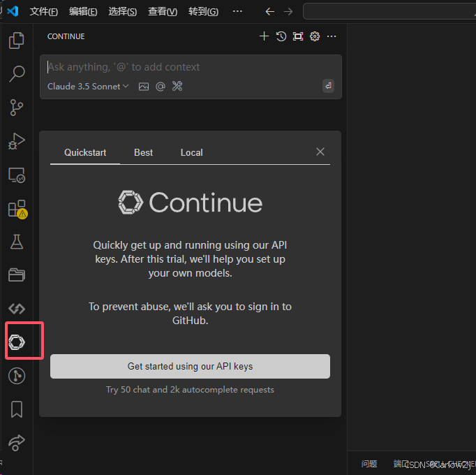 Continue 是一款流行的开源 AI 编程辅助工具,支持在 VSCode 中使用。安装步骤如下: