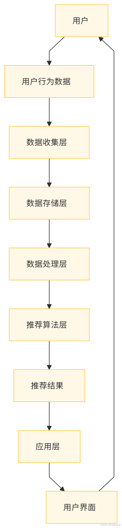 推荐算法层:应用机器学习或深度学习算法生成推荐结果。