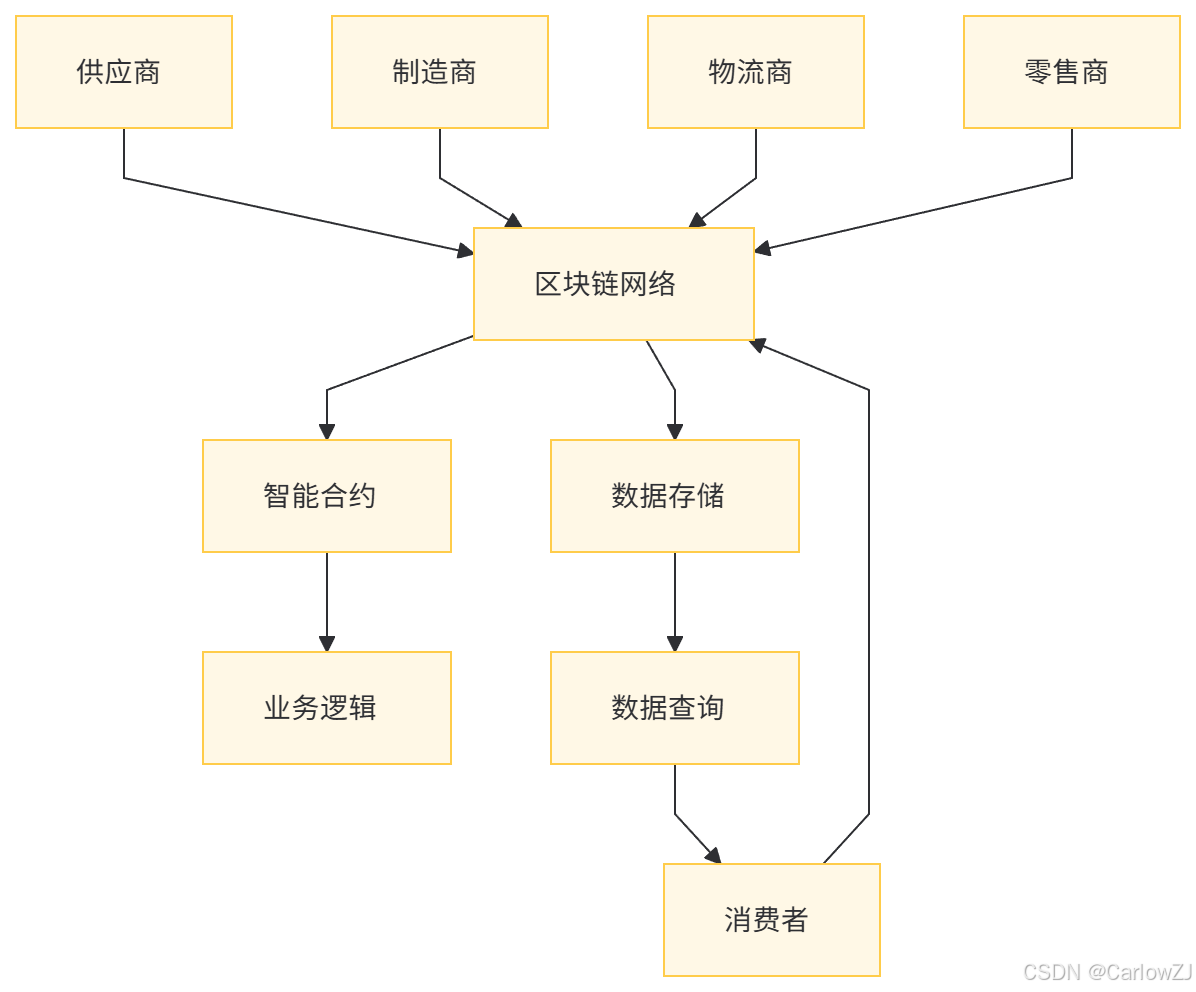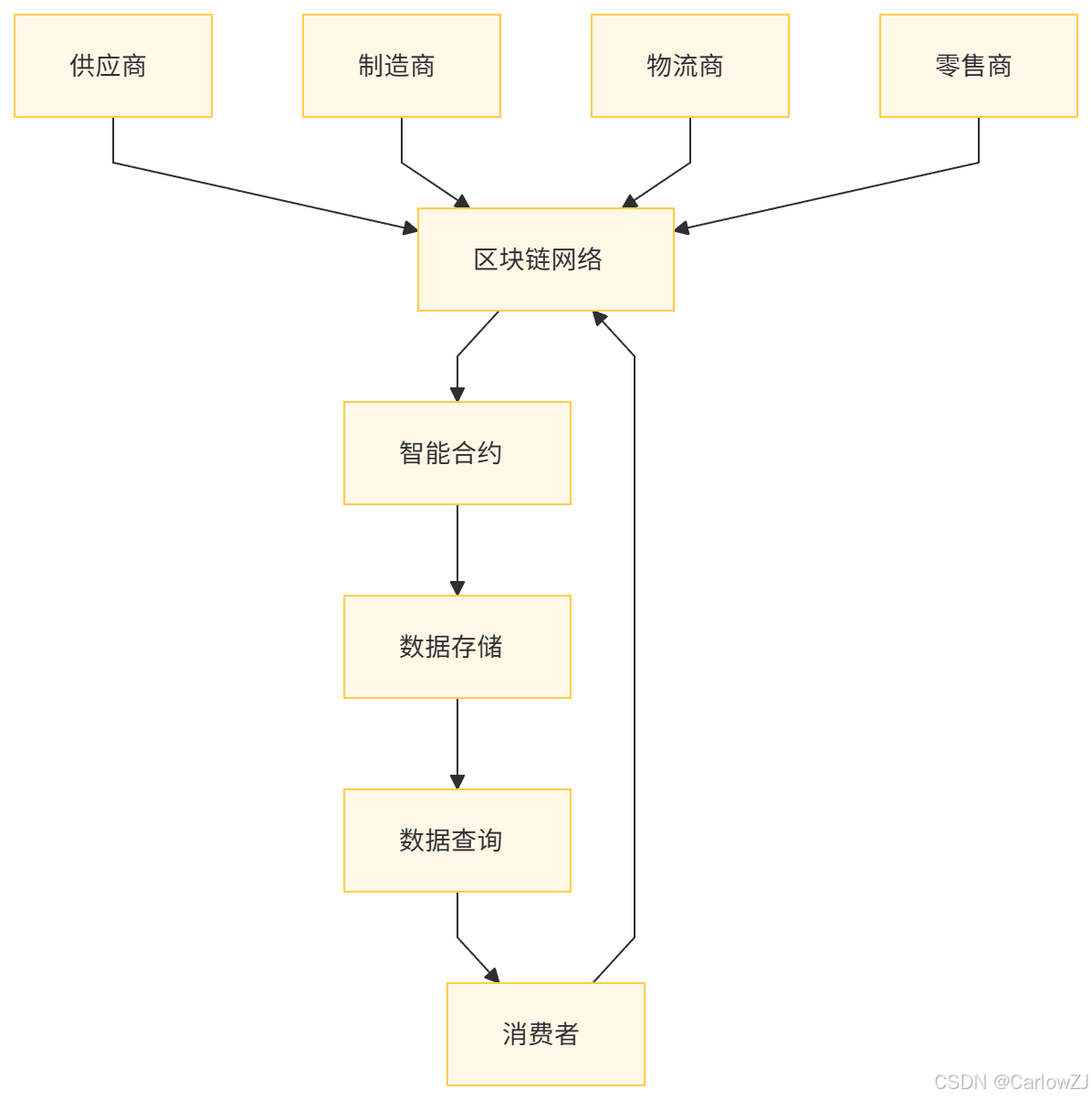 区块链网络:作为核心平台,存储和管理供应链中的所有数据。