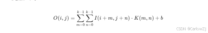 其中,I 是输入矩阵,K 是卷积核,b 是偏置项。