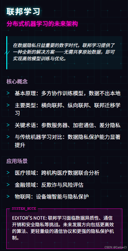 在当今数字化时代,数据隐私和安全问题日益凸显。传统的集中式机器学习方法往往需要将数据集中存储和处理,这不仅增加了数据泄露的风险,还可能受到数据所有权和隐私法规的限制。联邦学习作为一种新兴的分布式机器学习技术,为解决这些问题提供了新的思路。它通过在多个参与方之间协作训练模型,能够在不共享原始数据的情况下实现高效的模型优化,同时保护数据隐私。