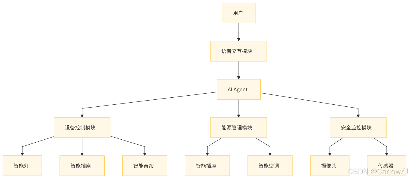 以下是使用Mermaid格式绘制的AI Agent智能家居系统的架构图: