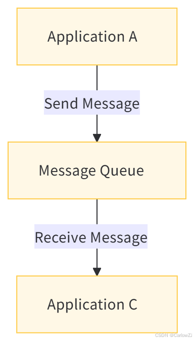 概念:通过消息队列中间件(如RabbitMQ、Kafka等)实现应用程序之间的异步通信。