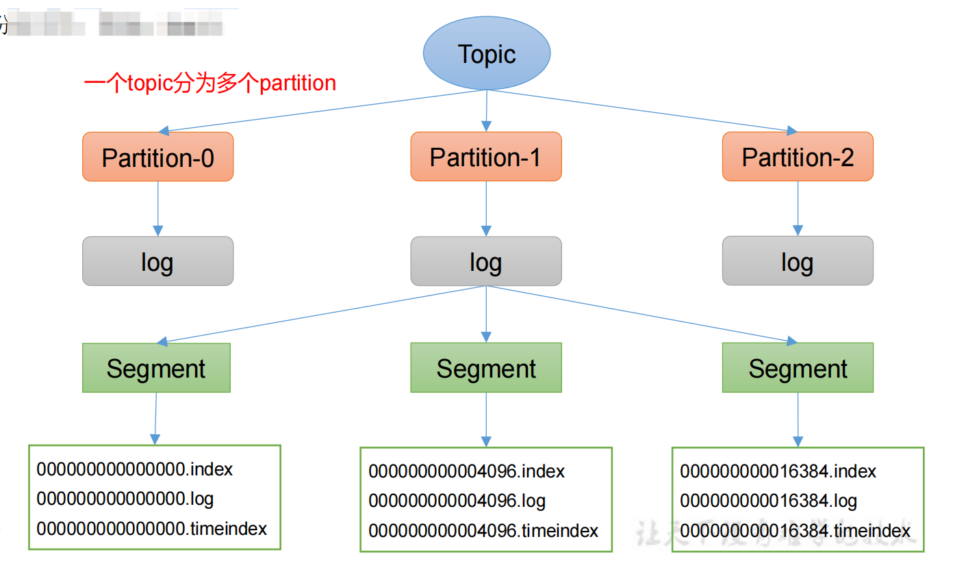 一个topic分为多个partition,每个 partition 对应于一个log文件,为防止 log 文件过大导致数据定位效率低下,Kafka 采取了分片和索引机制,每个partition分为多个segment。每个segment包括:“.index”文件、“.log”文件和.timeindex等文件,Producer生产的数据会被不断追加到该 log 文件末端。