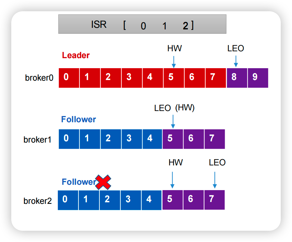Follower的LEO大于等于该Partition的HW,即Follower追上Leader之后,就可以重新加入 ISR 了。