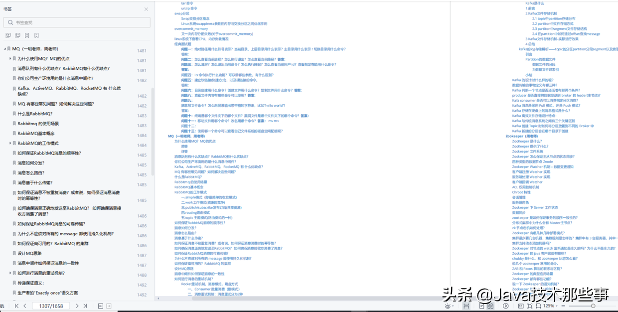 先看看《Java 岗面试核心 MCA 版》的大概内容:Java 基础、JVM、多线程、MySQL、Spring、SpringBoot、SpringCloud、Dubbo、Mybatis、Redis、网络、Linux、MQ、Zookeeper、Netty、大数据、算法与数据结构、设计模式、项目实战、简历模板等等。
