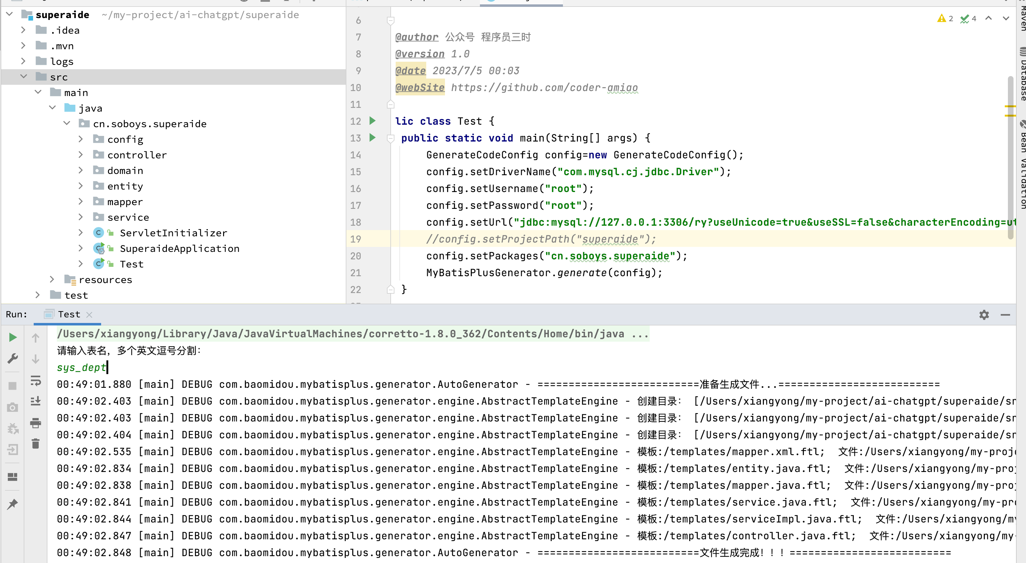 在项目中我们会频繁使用到mybatisPlus 但是简单的模板代码我们一键生成就好。 默认不依赖mybatisPlus任何相关包。如果需要使用自动代码生成引入mybatisPlus 代码生成依赖包即可。