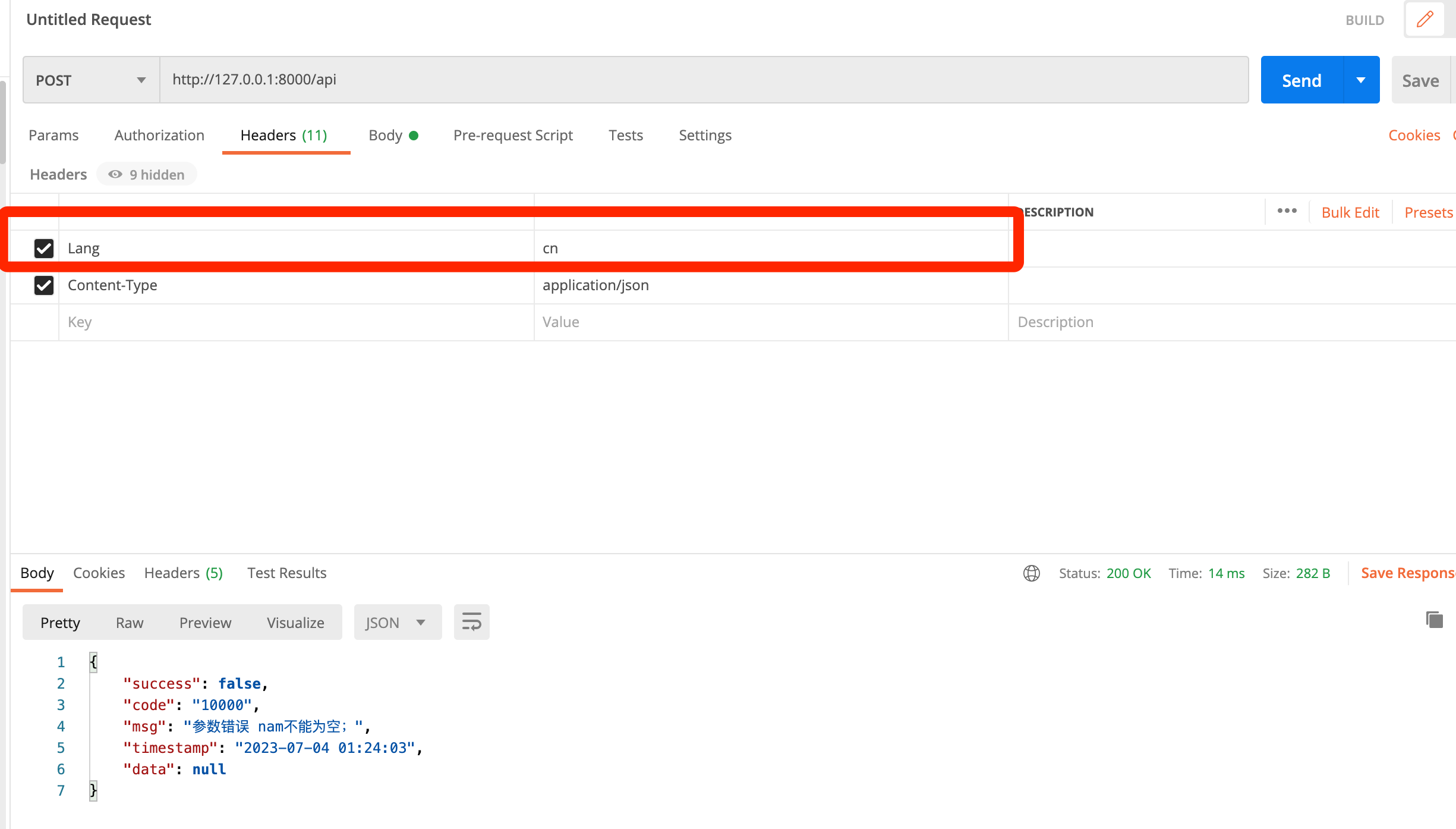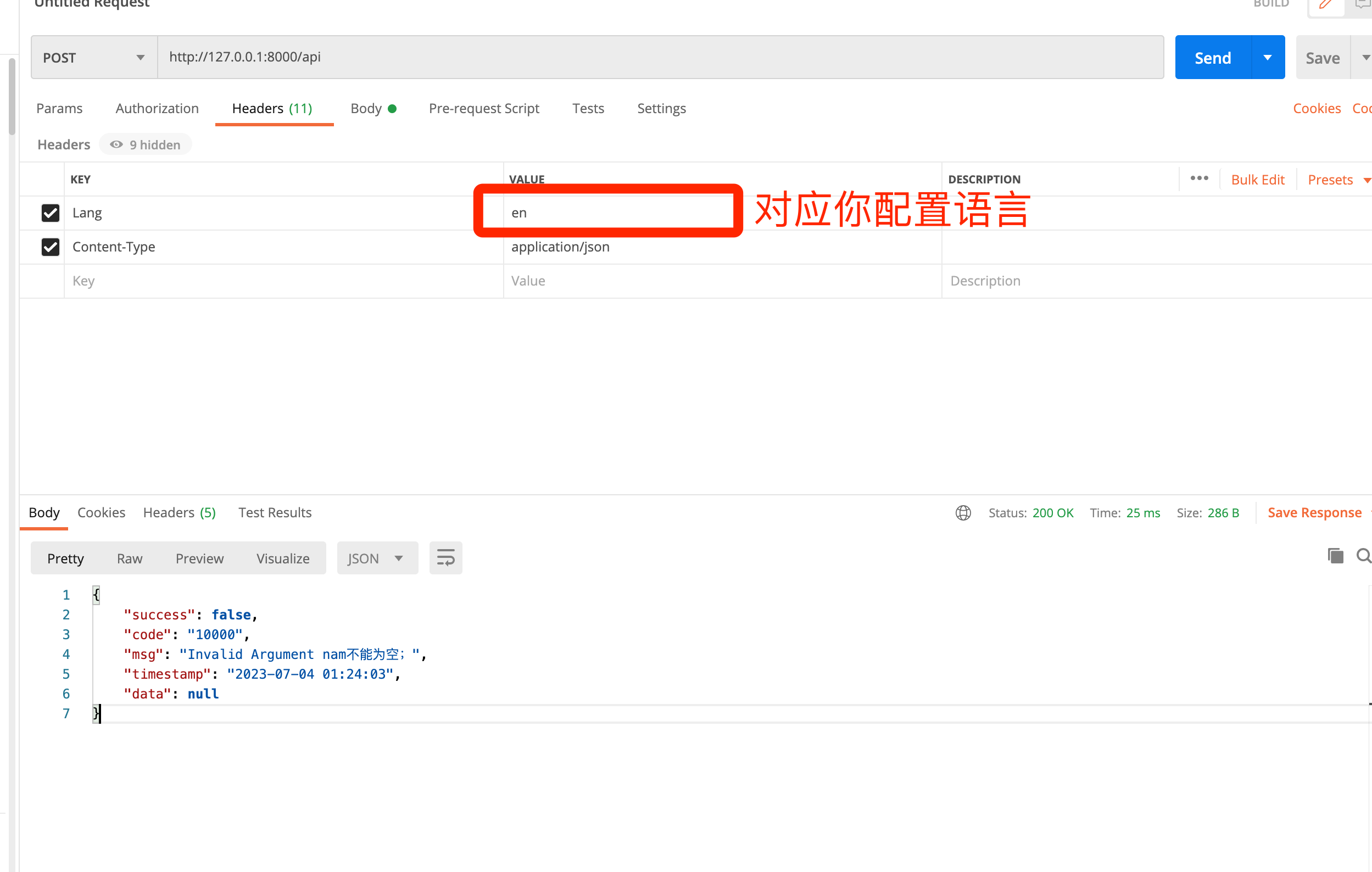 当我传入 指定语言 就会按照你配置的国际化自定义返回错误提示