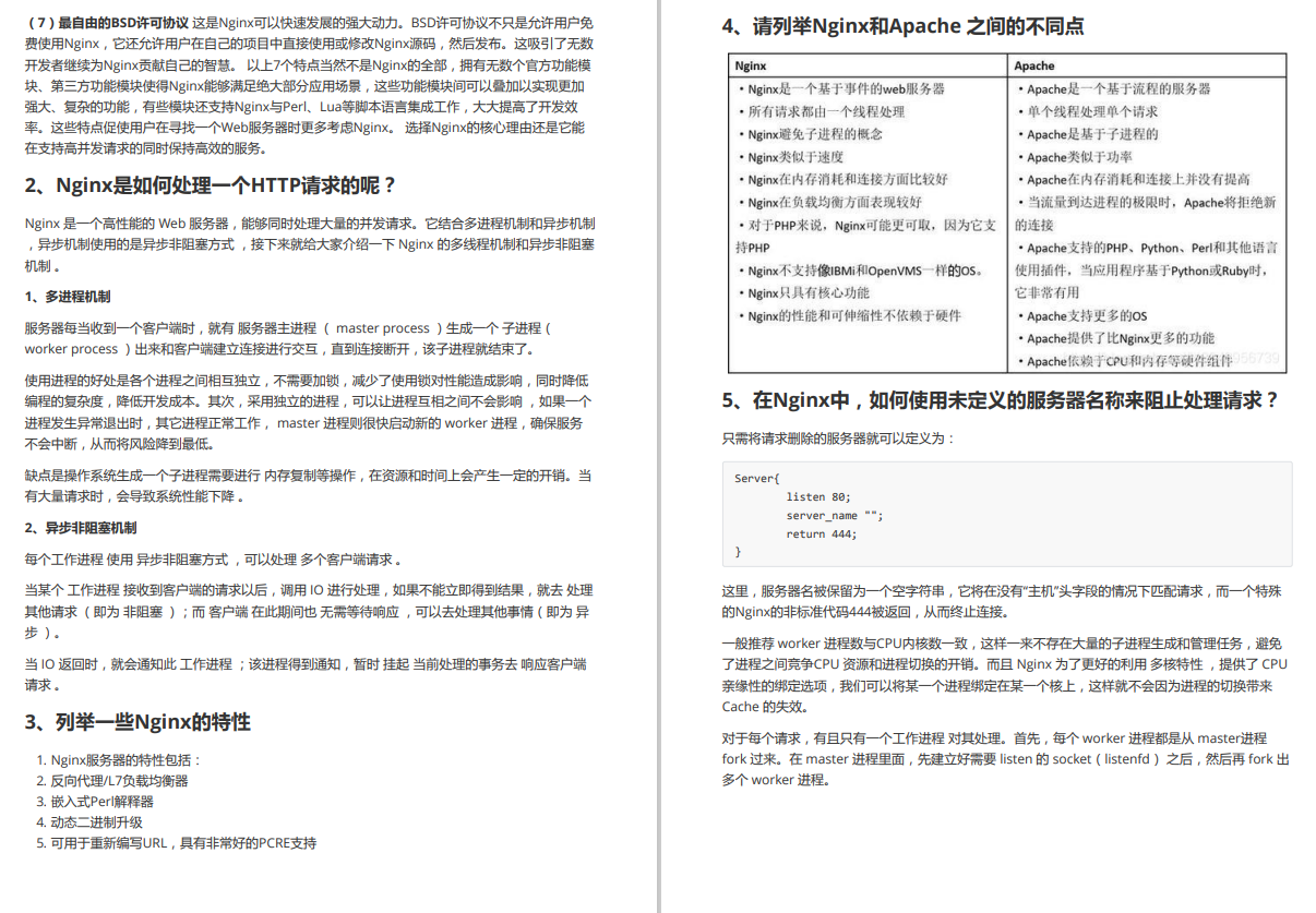 请列举 NginxApache 之间的不同点