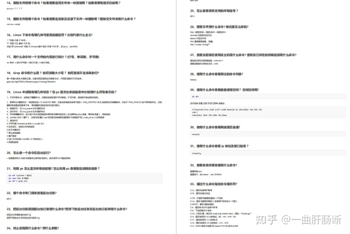 Linux 篇面试题中的知识点:单进程最大打开文件数限制、内核内存参数调优、TCP 发送 KEEPALIVE 消息频度、TCP FIN_WAIT_2 状态时间、定义 UDP 和 TCP 链接的本地端口取值范围、优化 TCP 接收缓存的最大值、最小值、默认值、优化 TCP 发送缓存的最大值、最小值、默认值、优化内核套接字接受缓存区默认大小、优化内核套接字发送缓存区默认大小,10、9、优化内核 TCP 的 SYN 攻击