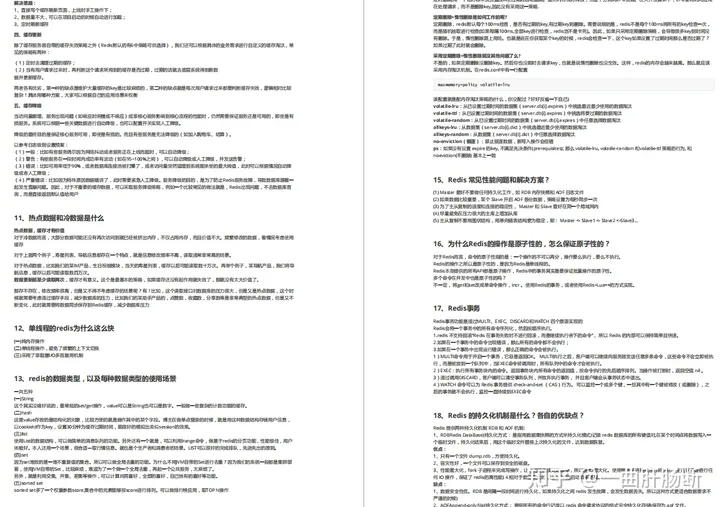 REDIS 篇面试题中的知识点:REDIS 部署、REDIS 的 VALUE 类型、REDIS 的发布订阅、REDIS 的 MODULE 与布隆过滤器模块、REDIS 的 LUA 脚本、REDIS 的持久化方案、REDIS 的主从复制方案、REDIS 的 SENTINEL、REDIS 的同步机制、REDIS 的新可靠性配置等等