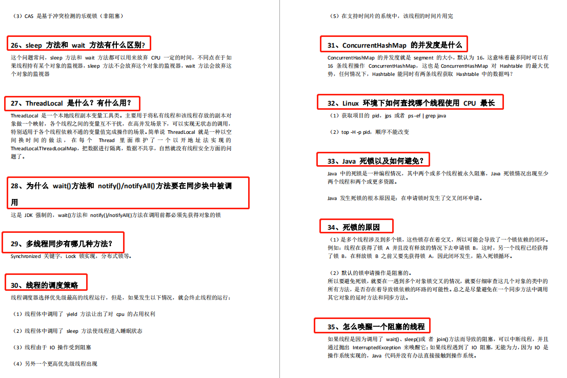 文中所有的面试题答案,我已经整理成一个 PDF 文档了,这一份文档涵盖了 Java、Redis、MongoDB、MySQL、Zookeeper、Spring Cloud、Dubbo/Kafka、Hadoop、Hbase、Flink 等高并发分布式、大数据、机器学习等技术面试点,如果需要的话各位可以来找我获取到